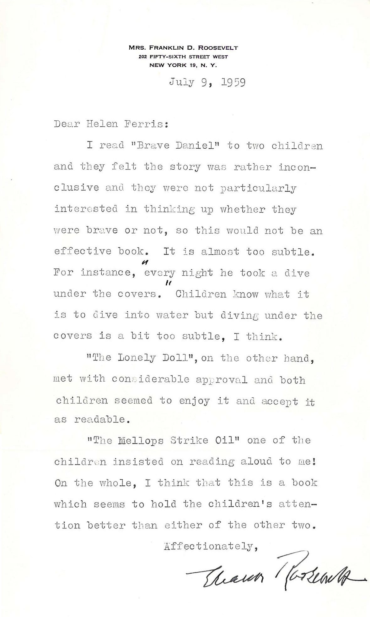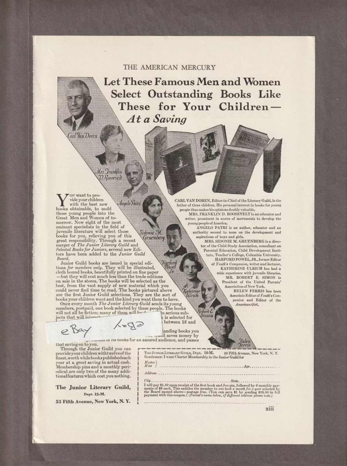 “Mrs. Tibbets must be very proud of what she has accomplished in the choice of books made by the Junior Literary Guild.” – Eleanor Rosevelt, 1939